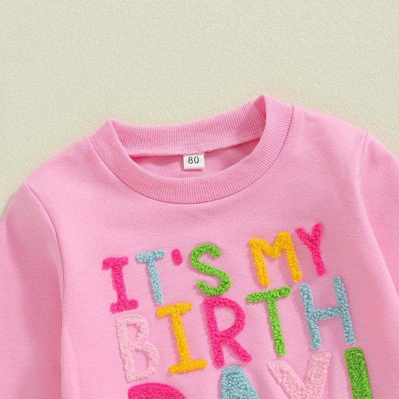 Kids Girls 2-piece Outfit, Long Sleeve Embroidery Letters Sweatshirt with Tulle Skirt Birthday Clothes